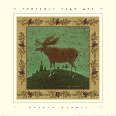 Folk Moose Art Poster Print by Warren Kimble, 14x14 Feature
